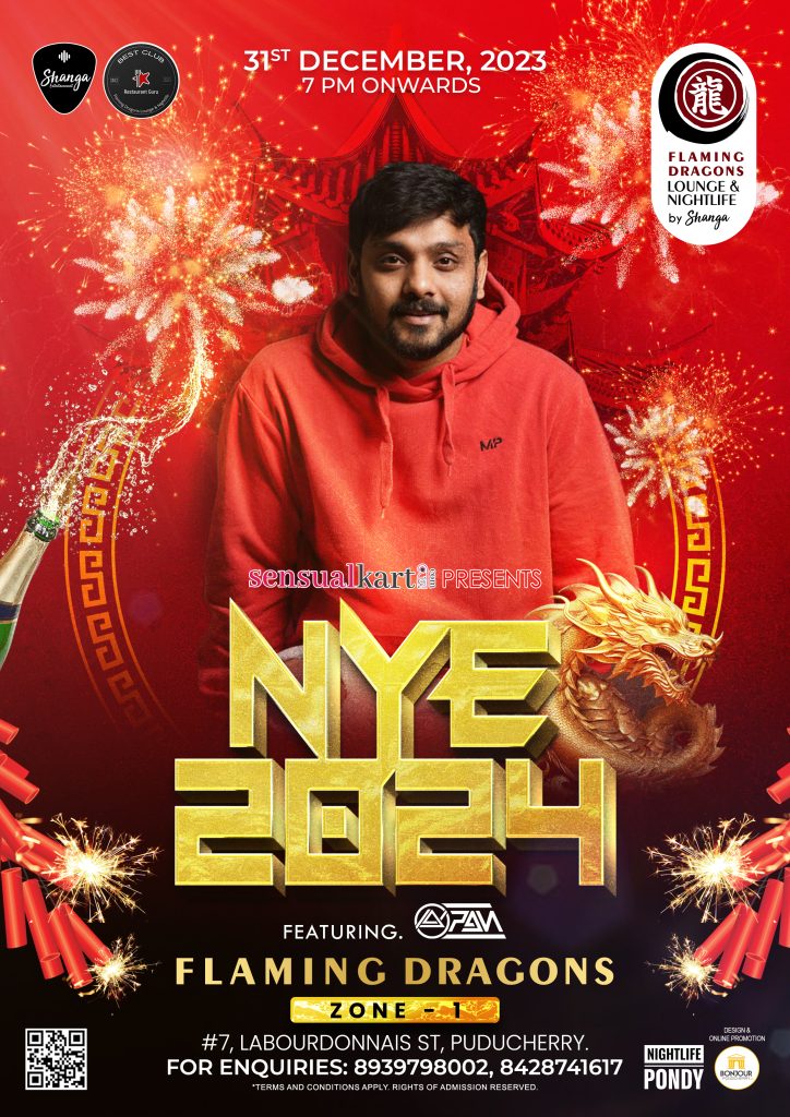 Experience: Dive into a Chinese-themed celebration at Pondy’s 1st Premium Lounge. Enjoy a wide array of liquors, a two-floor party with DJ Pan in zone 1 and DJ KEE in zone 2. Date: 31st December, starting at 7:00 pm. For booking call: 8939798002