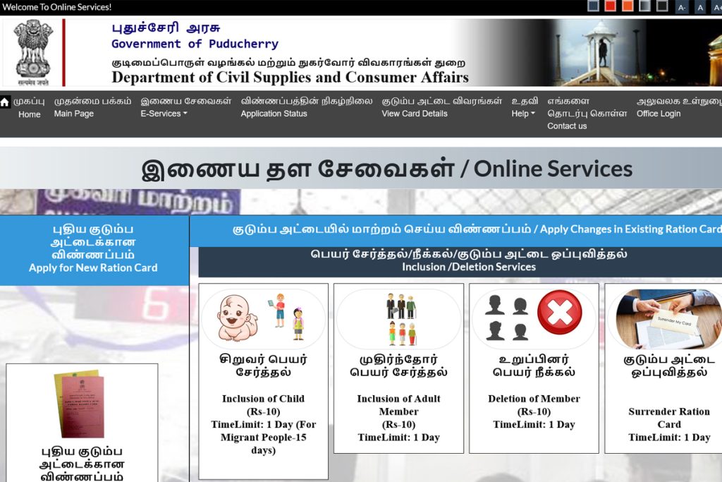 Tailored for Puducherry residents, this site facilitates e-services related to civil supplies and consumer affairs. Residents can update ration card details, monitor application status, and submit grievances. The portal also supports online payments, streamlining the entire process.