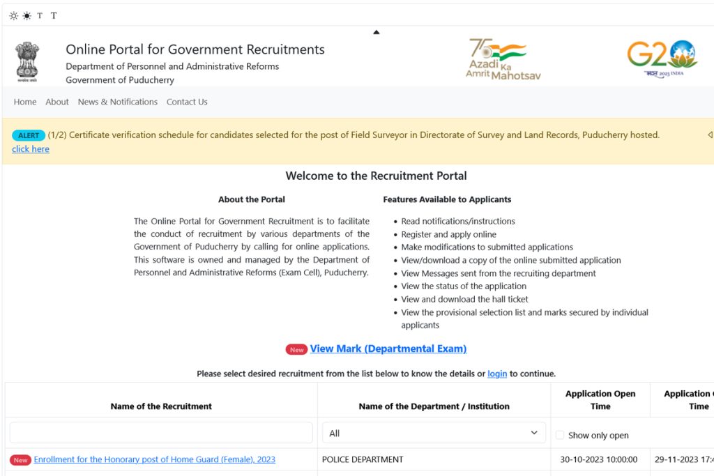 Operated by the Department of Personnel and Administrative Reforms, this portal showcases job opportunities across various sectors in Puducherry. Aspiring candidates can efficiently apply directly through the website, following detailed application steps and timelines.