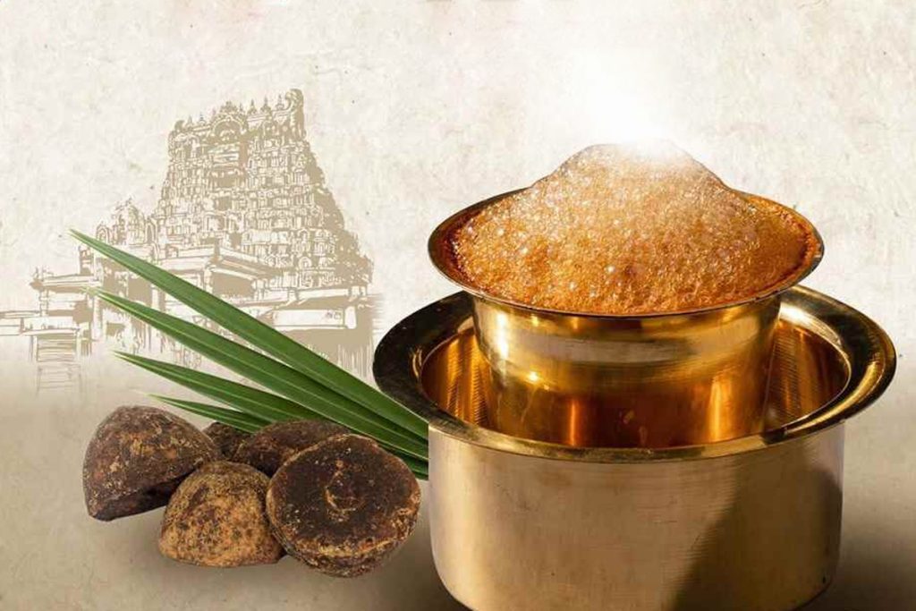 Ingredients: Jaggery, water, dry ginger powder, cardamom, and edible camphor.