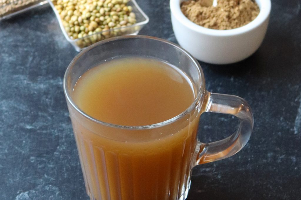 Ingredients: Dry ginger (sukku), coriander seeds, black pepper, cumin seeds, jaggery, and water.