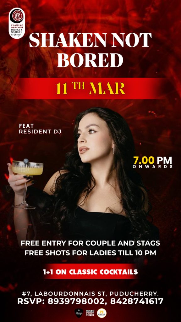 #FlamingDragons #ShakenNotBored #PondicherryNightlife #SaturdayParty #DJNight #CocktailNight #PondyParty #WhiteTownPondy #PartyInPondicherry #NightlifeVibes#BonjourPondicherry