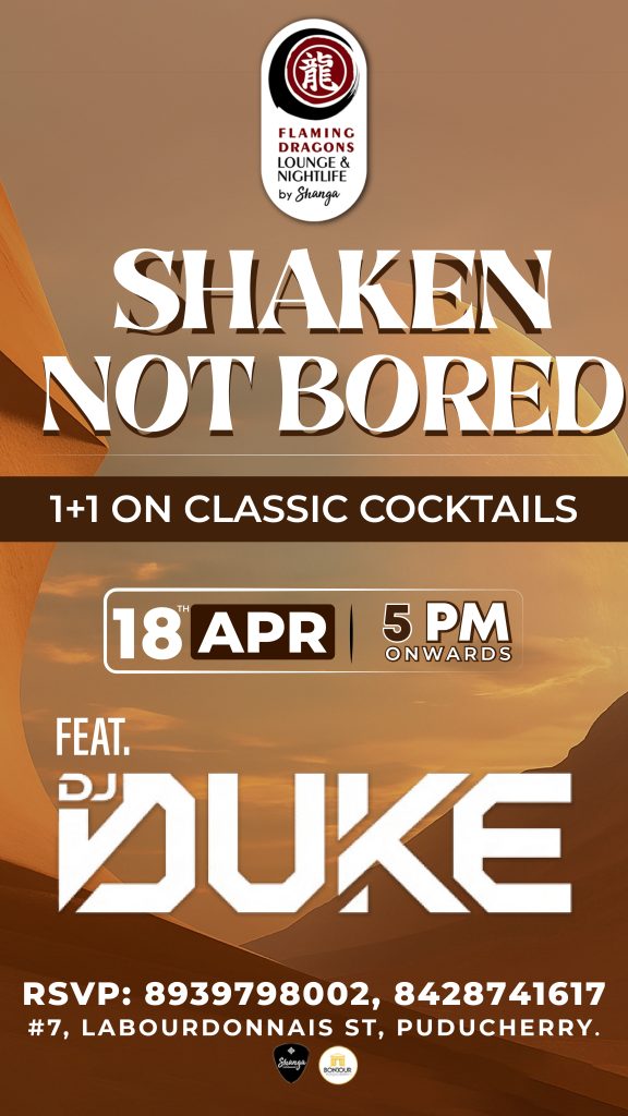 Get ready to stir up your midweek with Shaken, Not Bored—Pondicherry’s most vibrant Wednesday night experience! Whether you’re craving bold Asian flavors or a dancefloor escape, this is your midweek fix.