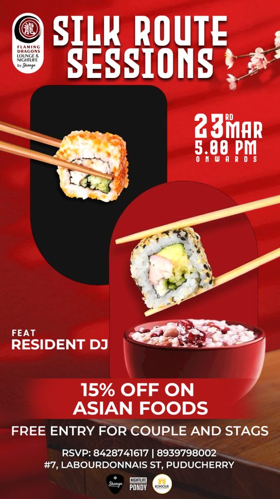 #FlamingDragons #SilkRouteSessions #PuducherryNightlife #AsianFood #PondyEvents #MondayVibes #NightlifeIndia #PuducherryFood #ResidentDJ#BonjourPondicherry