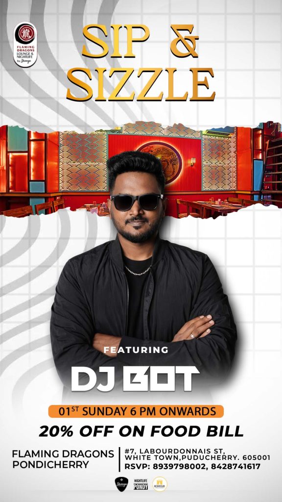 #FlamingDragons #SipAndSizzle #SundayFunday #DJGot #PondicherryNightlife #WhiteTown #PuducherryEvents #SundayVibes#BonjourPondicherry