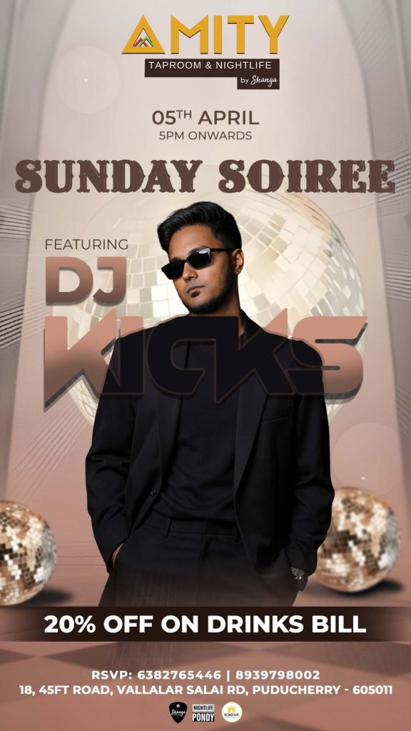 #SundaySoiree #AmityNightlife #PondyNights #DJDuke #WeekendVibes #PartyInPondy #DrinkDeals #NightlifeExperience #BonjourPondicherry